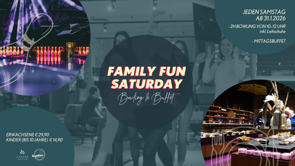 Ab dem 31. Jänner 2026 heißt es bei uns jeden Samstag: gemeinsam spielen, lachen und genießen! Der Family Fun Saturday verbindet aktiven Bowling-Spaß mit einem entspannten Mittagsbuffet und ist damit der perfekte Start ins Wochenende für die ganze Familie. 🎳 Bowling-Spaß für Groß & Klein Von 10:00 bis 12:00 Uhr erwarten Sie: – 2 Stunden…